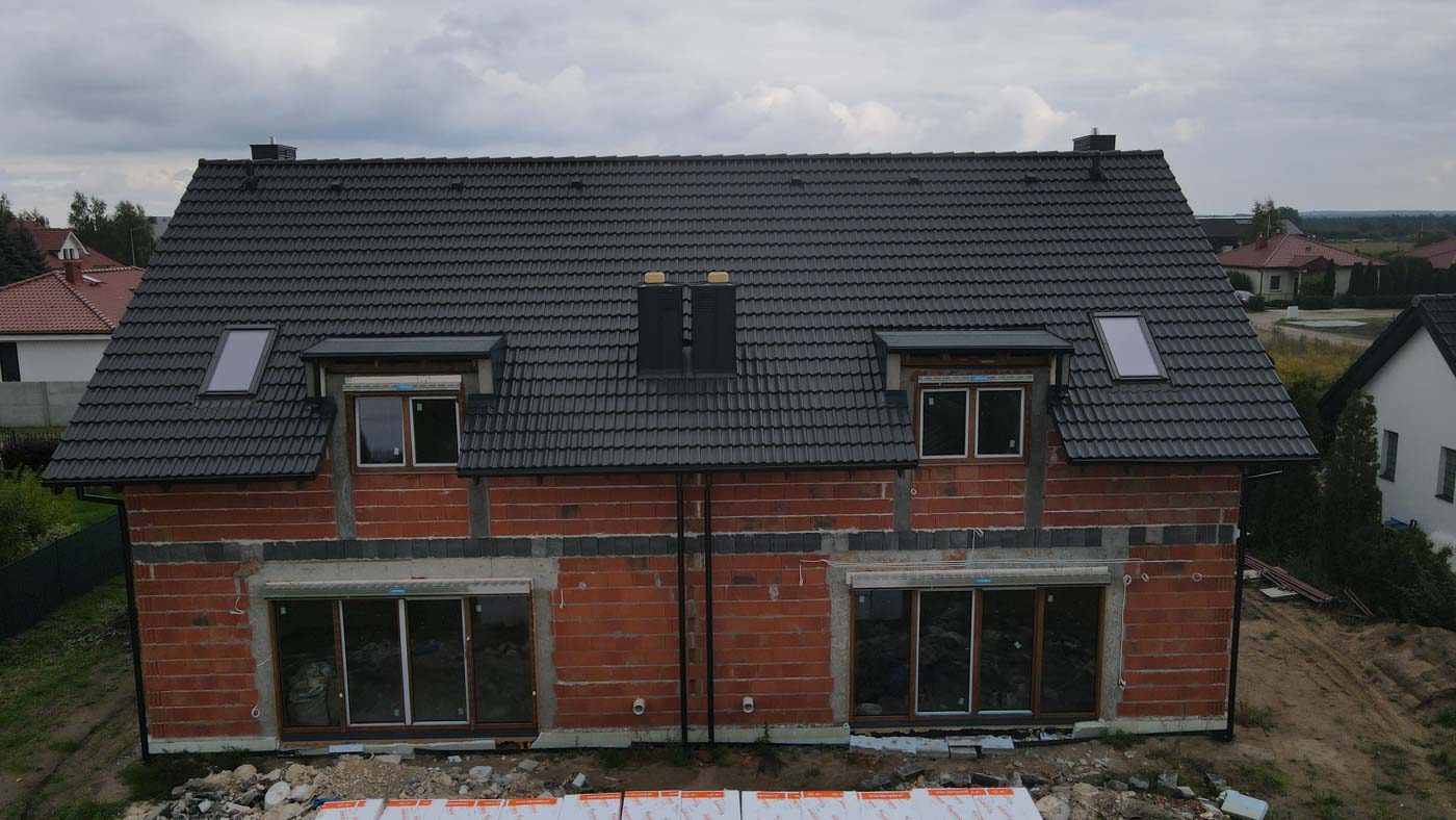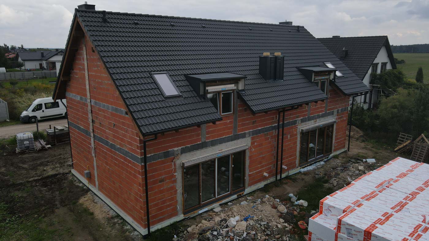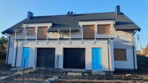 Realizacja elewacji budynków mieszkalnych w zabudowie jednorodzinnej i bliźniaczej. Wykonano nowoczesne wykończenie z dbałością o detale, spójną kolorystykę oraz trwałość materiałów. Efektem jest estetyczna, elegancka elewacja podkreślająca charakter nowej zabudowy mieszkaniowej.