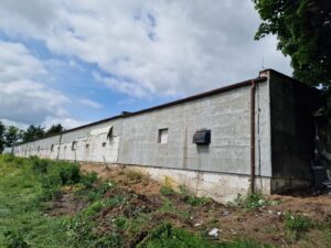 Elewacja obiektu została kompleksowo odświeżona i zabezpieczona, dzięki czemu budynek zyskał nowy, estetyczny wygląd oraz zwiększoną odporność na działanie czynników atmosferycznych, a jasna kolorystyka i jednolite wykończenie ścian podkreślają nowoczesny i profesjonalny charakter.